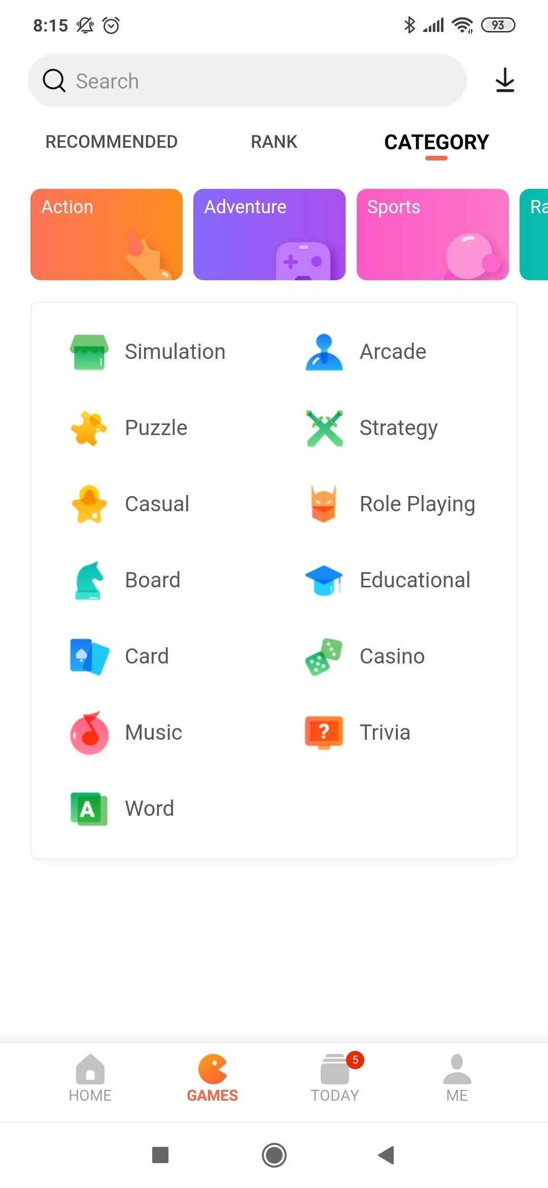 L'écran principal propose un menu pour une recherche rapide d'applications. Vous pouvez utiliser l'option de filtrage pour trouver l'application ou le jeu souhaité. Cela vous permet de tester l'application avant publication. Téléchargez des applications pour le montage vidéo ou l'enregistrement audio/vidéo sur votre appareil. Vous pouvez également créer des collections élégantes de jeux d'arcade, de logique, de puzzles, de simulation, de tir, de quêtes et autres jeux.