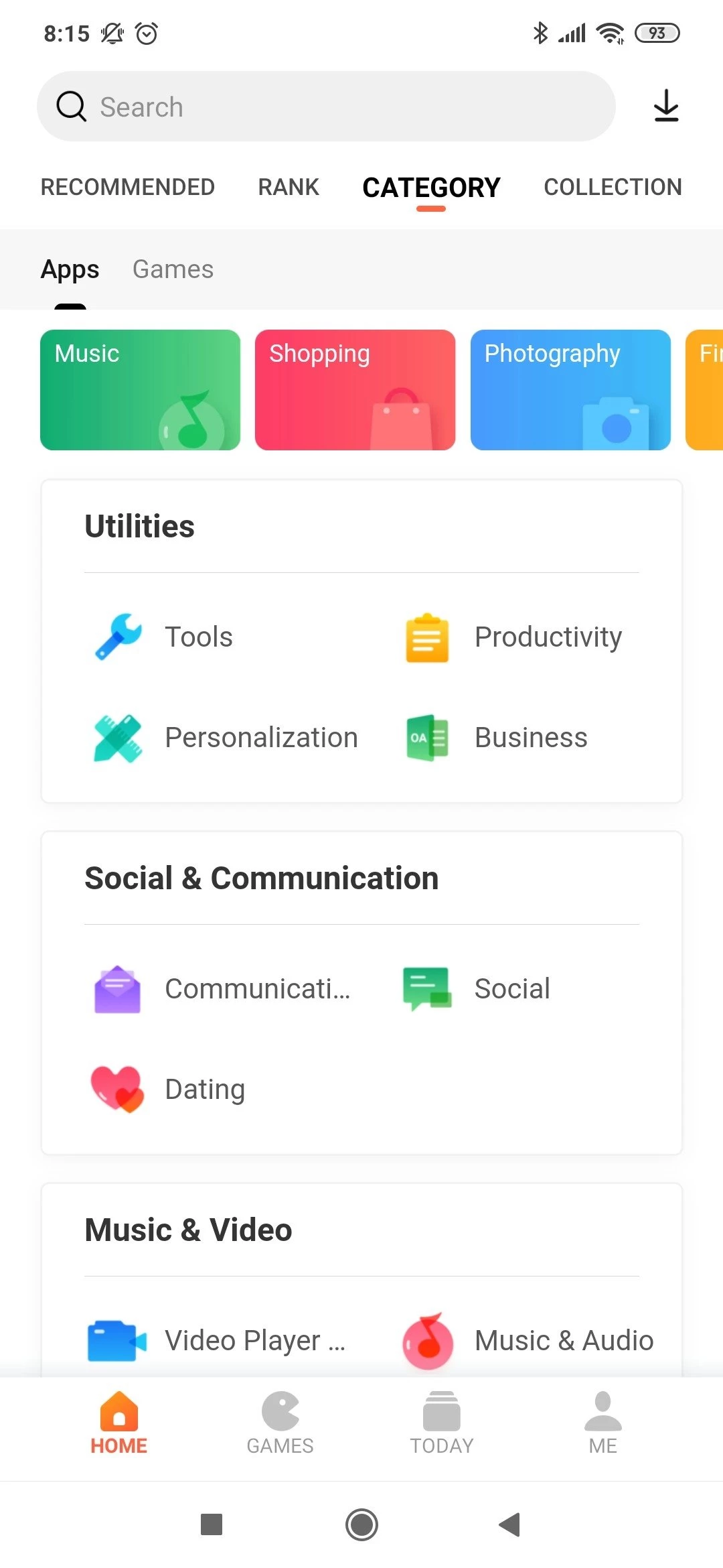 Une fois l'installation terminée, lancez l'application et connectez-vous à votre compte. La page d'accueil, avec son interface élégante, vous séduira et propose des catégories telles que la communication, la photographie, les jeux vidéo, etc. Chaque catégorie propose une multitude d'applications classées par popularité.